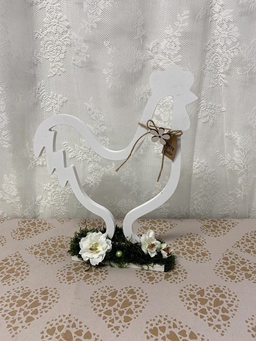 Úvod > E-shop > Velikonoční dekorace > Dřevěný bílý kohoutek s přízdobou
